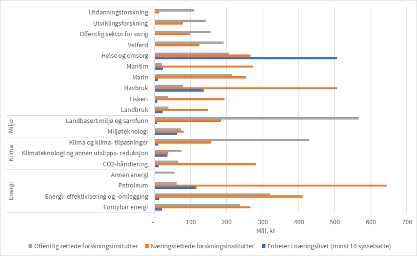 Energi, miljø og klima dominerer i offentlig rettede institutter