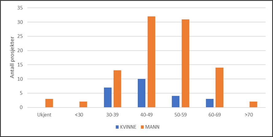 Andelen kvinnelige prosjektledere er lav, og det vil fortsatt være aktuelt å prioritere søknader med kvinnelige prosjektledere.