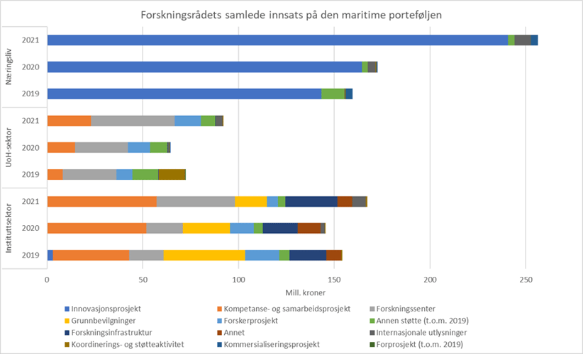 Den maritime porteføljen består av den målrettede innsatsen gjennom MAROFF og øvrig innsats i forskningsrådet samt SkatteFUNN.