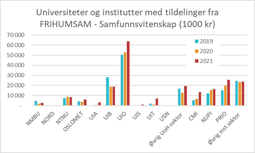 Bevilgninger til Institusjoner fra FRIHUMSAM