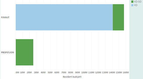 Kunnskapsdepartementet finansierer porteføljestyrets egne investeringer. Kunnskapsdepartementet har høye ambisjoner for forskning om utdanning og kompetanse og har en egen strategi for utdanningsforskning[3]. Figur 3 viser finansieringskildene for de forskjellige budsjettformålene som porteføljestyret for Utdanning og kompetanse har ansvaret for.